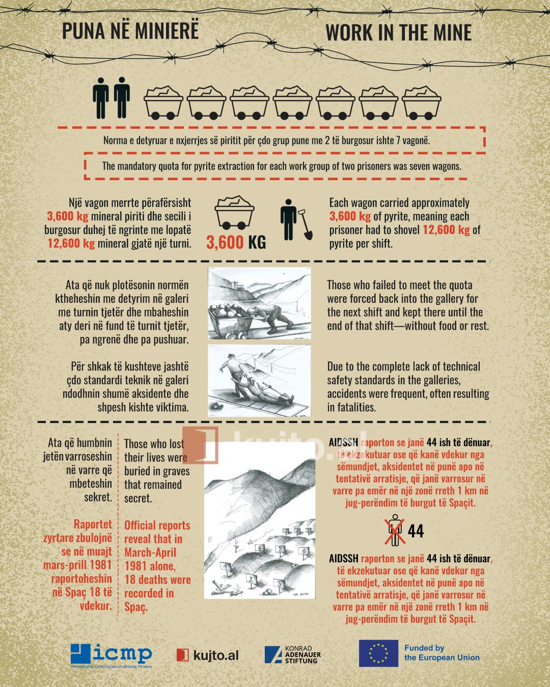 Jeta brenda kampit diktohej nga i njëjti regjim tre turnesh i punës së detyruar në minierë.