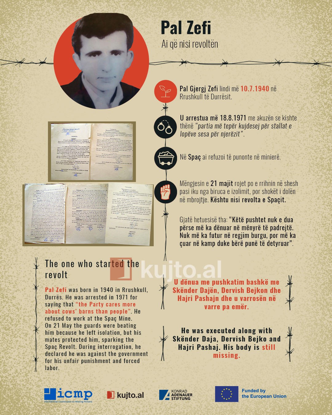 Ekspozitë me infografika për ish-Kampin e punës së detyruar të Spaçit, ku vuajtën mijëra të burgosur politikë gjatë regjimit komunist të Enver Hoxhës. Një homazh për 4 martirët e Revoltës së 21-23 Maj 1973. Ekspozita u hap më 21 maj 2025 në ish-Kampin e punës së detyruar të Spaçit gjatë aktiviteteve përkujtimore për 52-vjetorin e Revoltës së Spaçit dhe do të qëndrojë e hapur në ambjentet e godinës kryesore. Fondacioni Kujto ia ka dhuruar materialet e ekspozitës sitit kulturor.