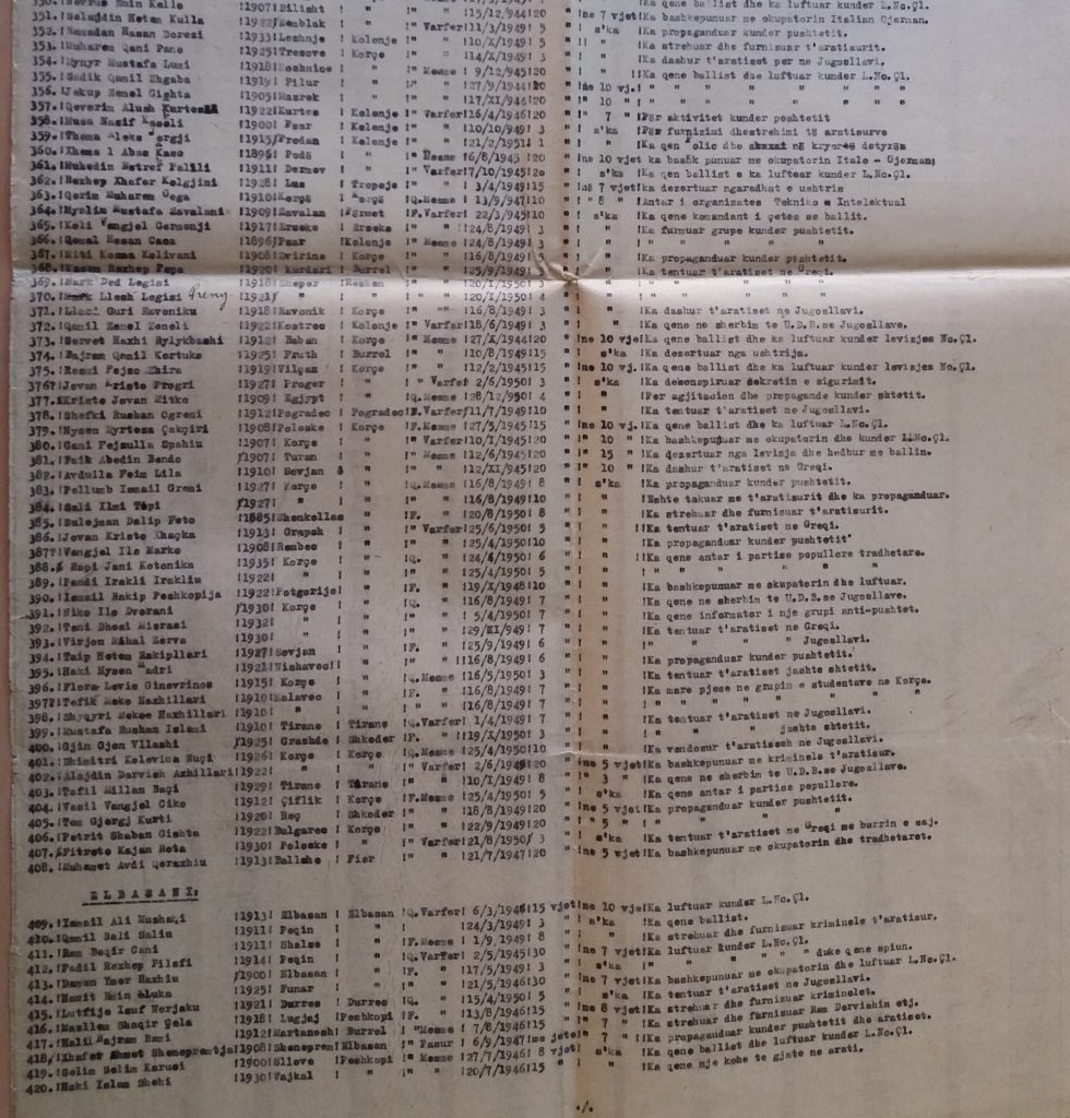 Referuar shkresës zyrtare të 24 nëntorit 1951, ku Mehmet Shehu kishte propozuar dy lista me të dënuar, njëra politik dhe tjetra ordiner, për amnisti me rastin e përvjetorit të Çlirimit, Kujto.al - Arkiva Online e Viktimave të Komunizmit, sjell sot pjesën e fundit të listës me të dhëna të reja arkivore, duke e pasuruar arkivën për 482 të dënuar politik të regjimit komunist.